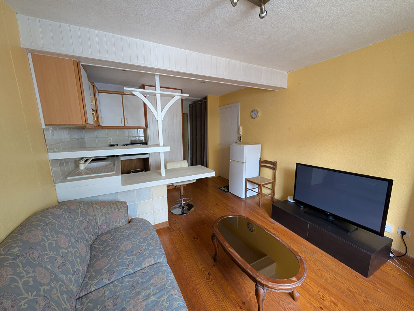 Il s’organise autour d’un séjour lumineux de 15,10 m², constituant un espace de vie confortable et facile à aménager. L’ensemble de l’appartement, à l’exception de la salle de bain, est équipé d’un parquet, apportant chaleur et harmonie à l’espace.