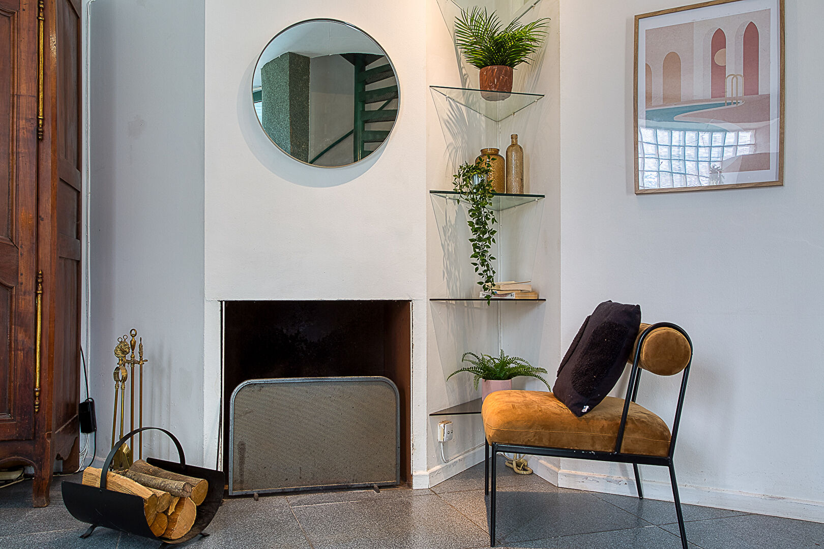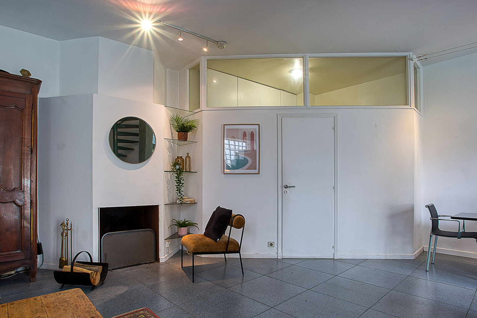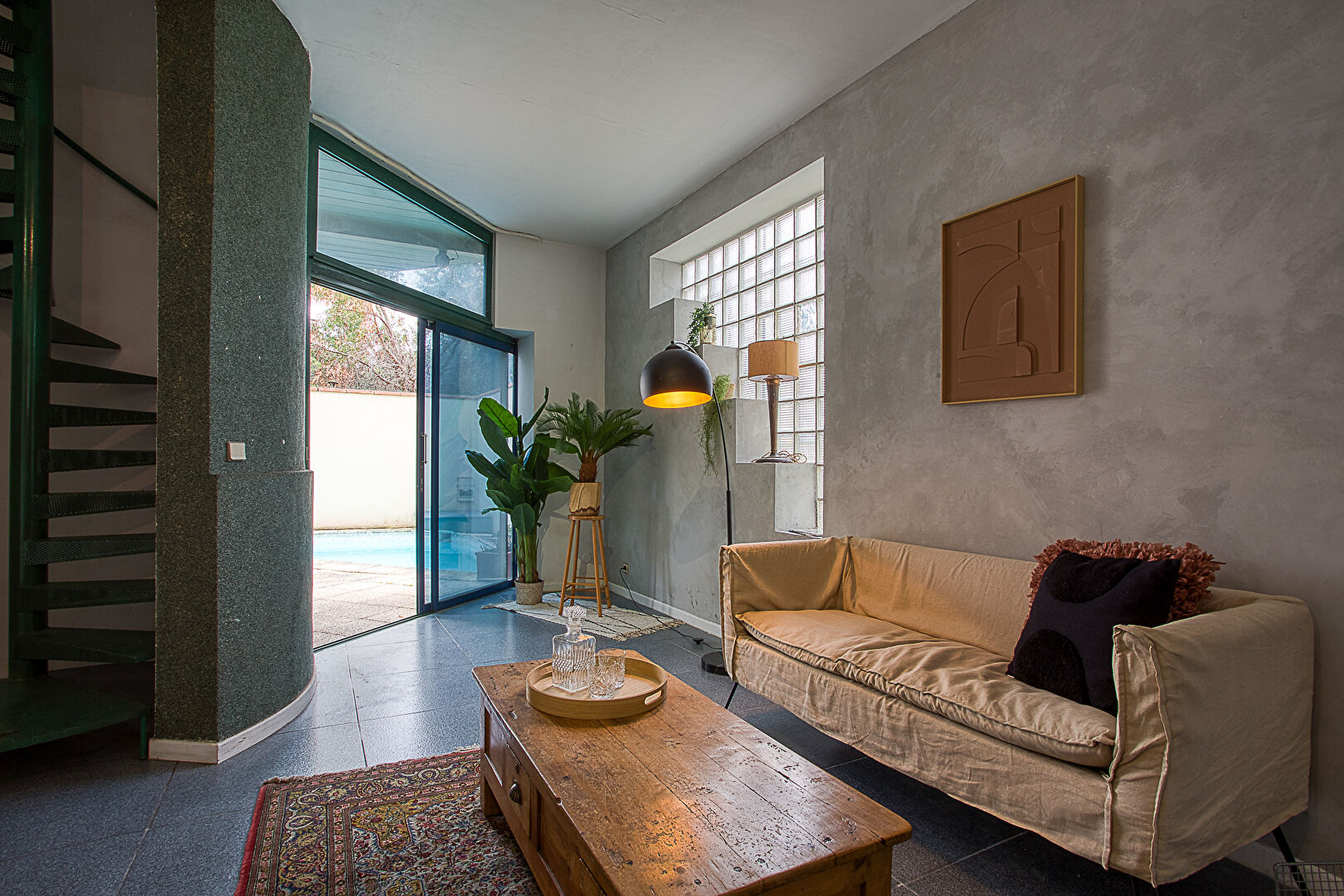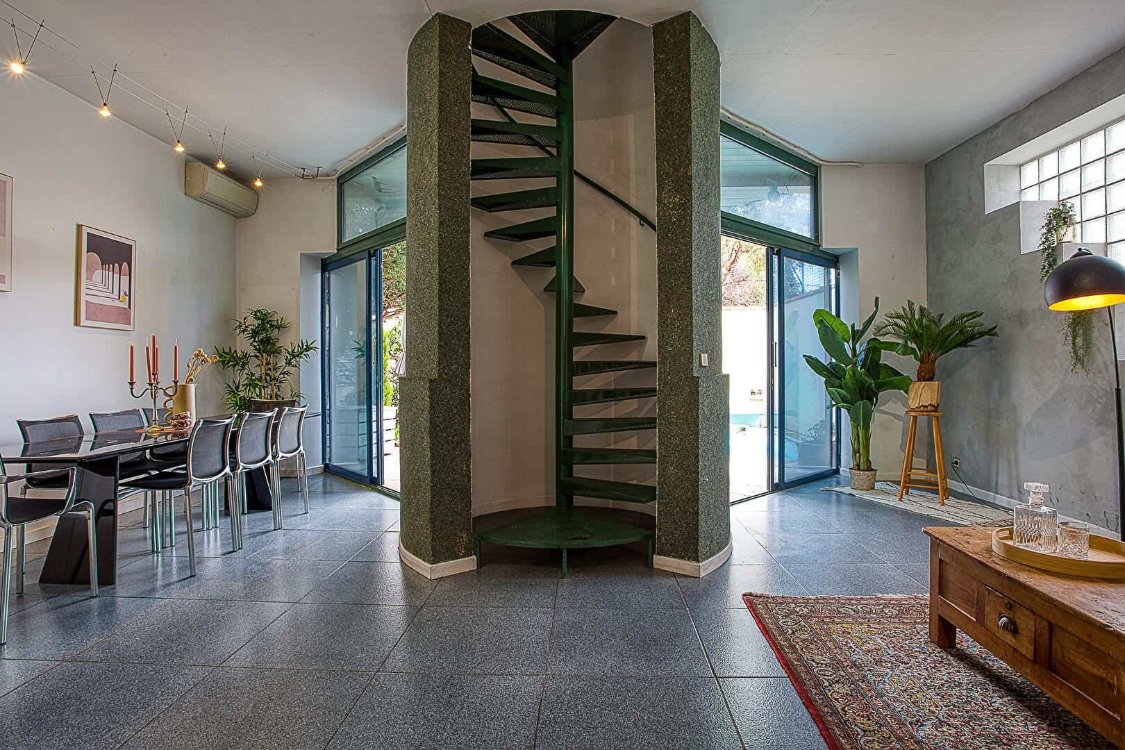 Architecture originale, escalier arrondi spectaculaire, volumes atypiques et charme indéniable.