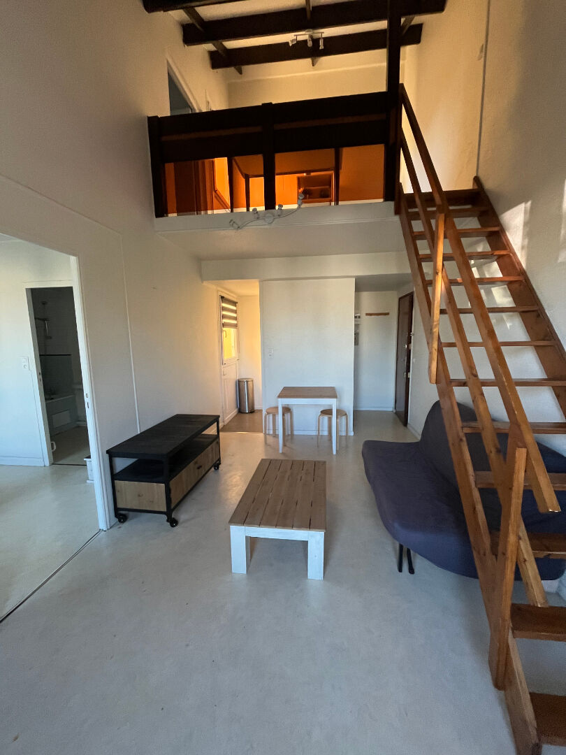 L’appartement est composé d’un séjour, un coin cuisine équipée, une chambre séparée, une salle de bain avec wc et en duplex un bureau ‘pouvant servir de chambre) et un dressing.