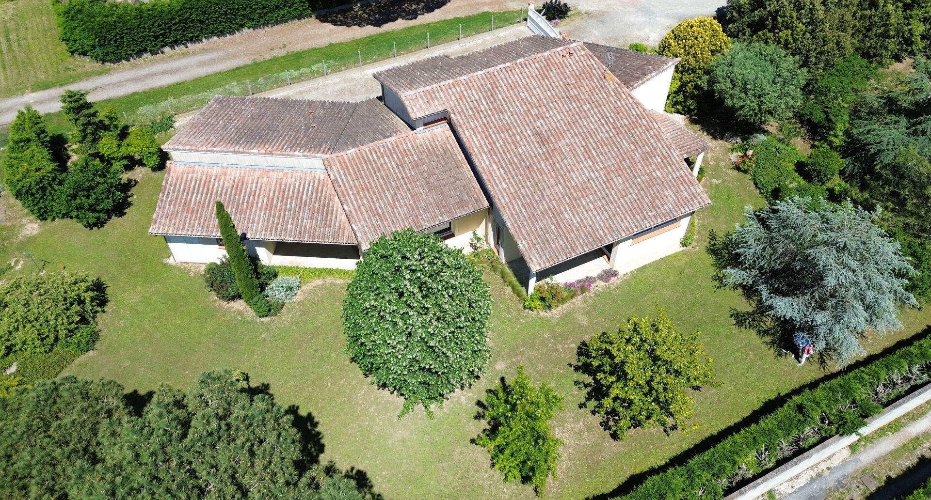 Elle est également dotée de deux garages accessibles depuis la maison, trois terrasses bien exposées, une buanderie, un atelier et un grenier.